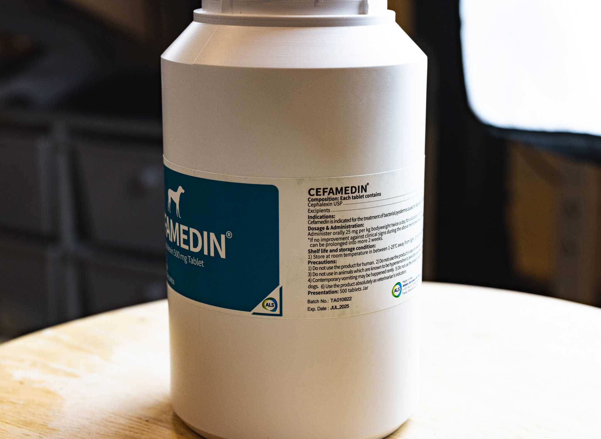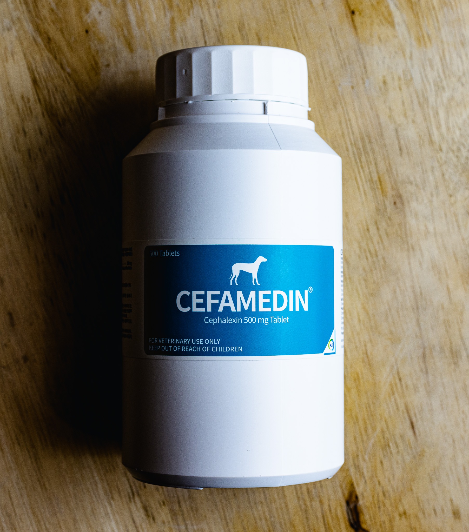 1정에 유효 성분인 세팔렉신 500mg 포함된 알약입니다. 감염에 의한 세균성 농피증 치료에 주로 사용되며